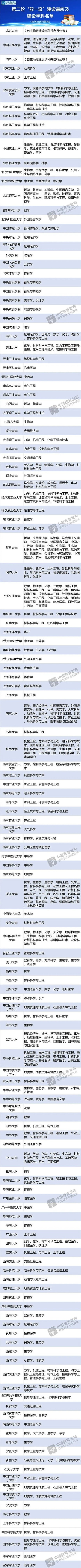 2022年2月,教育部公布第二轮“双一流”建设高校及建设学科名单,147所高校入选。相比第一轮,新增山西大学、华南农业大学、南方科技大学、广州医科大学、南京医科大学、湘潭大学、上海科技大学7所高校入围。